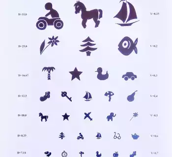 - Они содержат различные символы и буквы, которые пациент должен различать на определенном расстоянии.