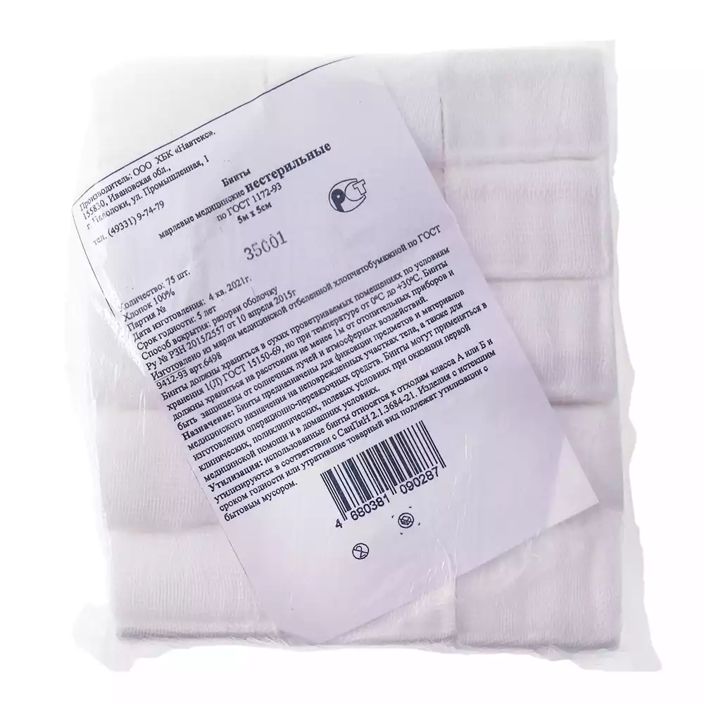 Бинт марлевый, размер 5м*5см, плотность 36г/м2, нестерильный, Навтекс ХБК (РОССИЯ)