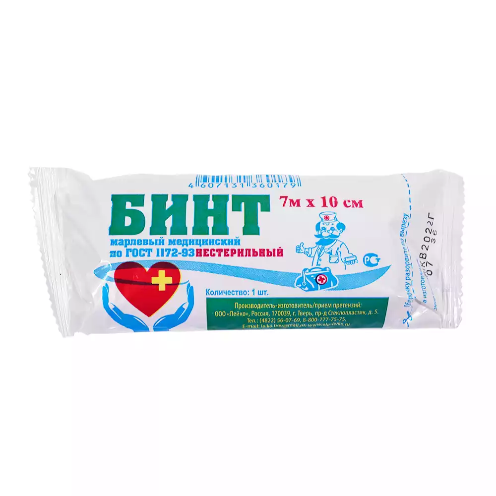 Бинт марлевый, размер 5м*7см, плотность 32г/м2, нестерильный, Лейко (РОССИЯ)