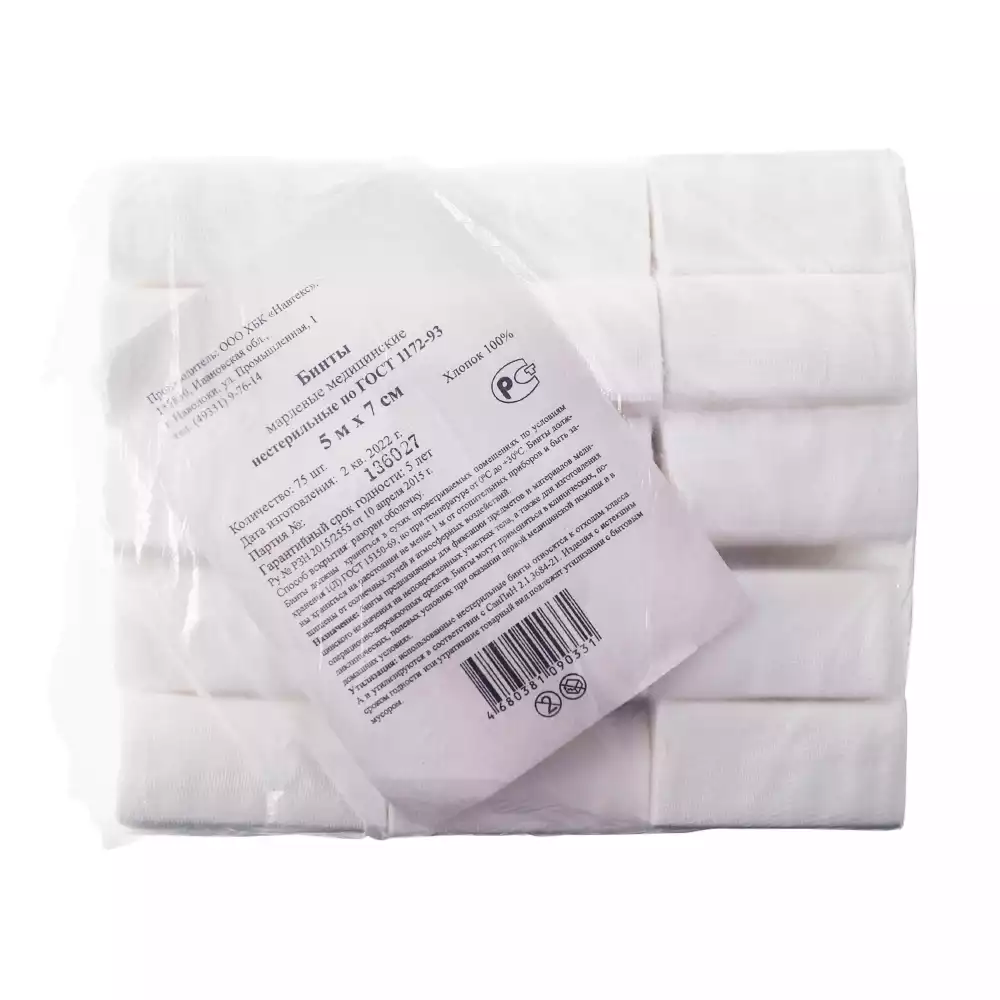 Бинт марлевый, размер 5м*7см, плотность 36г/м2, нестерильный, Навтекс ХБК (РОССИЯ)