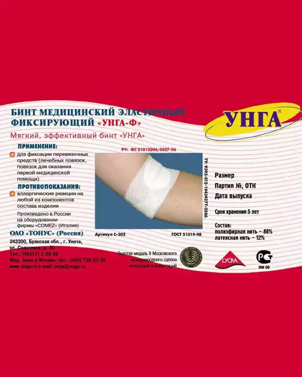 Бинт УНГА-СР, эластичный средней растяжимости, размер 1,5м*8см Lycra, Тонус АО