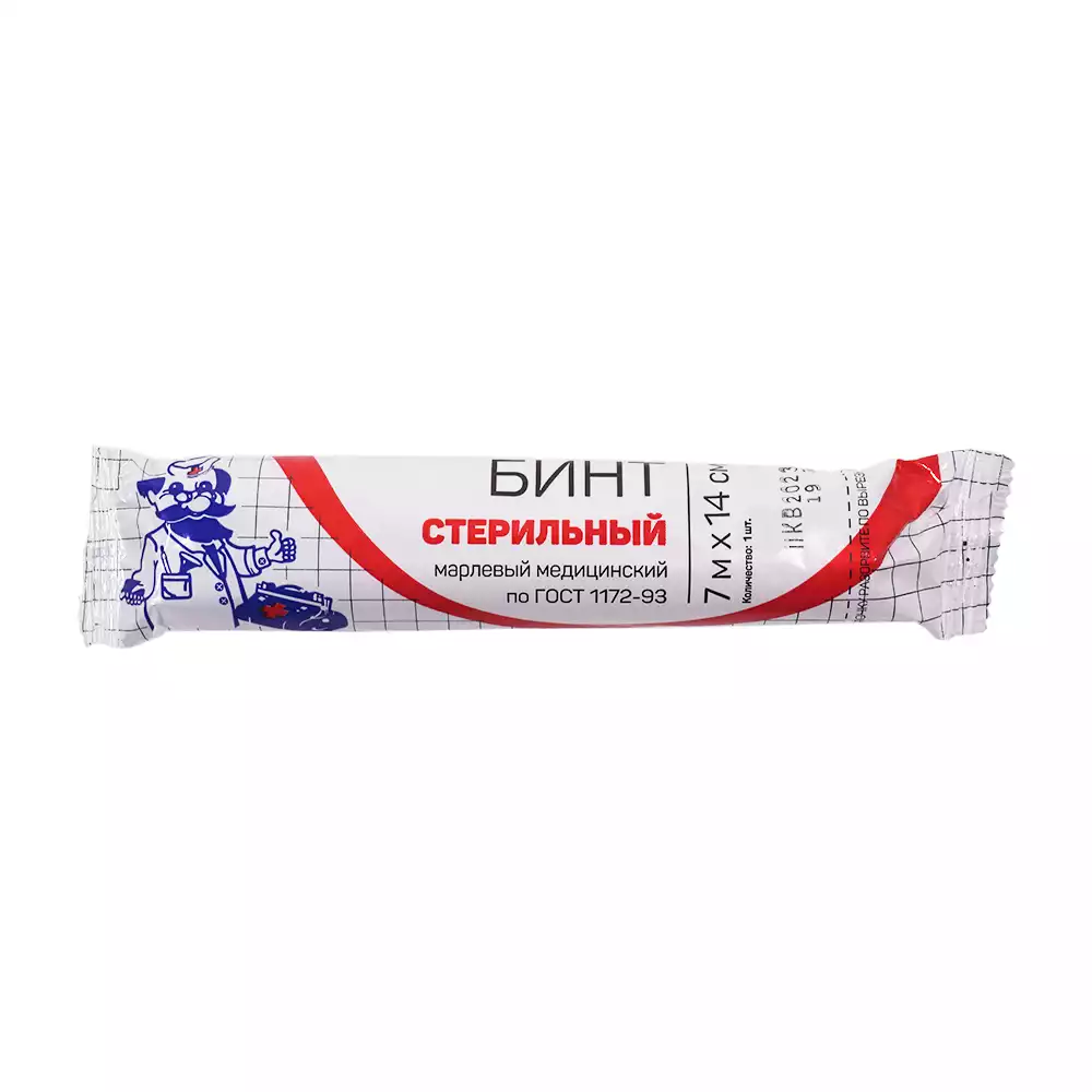 Бинт марлевый, размер 7м*14см, плотность 36г/м2, стерильный, Лейко (РОССИЯ)