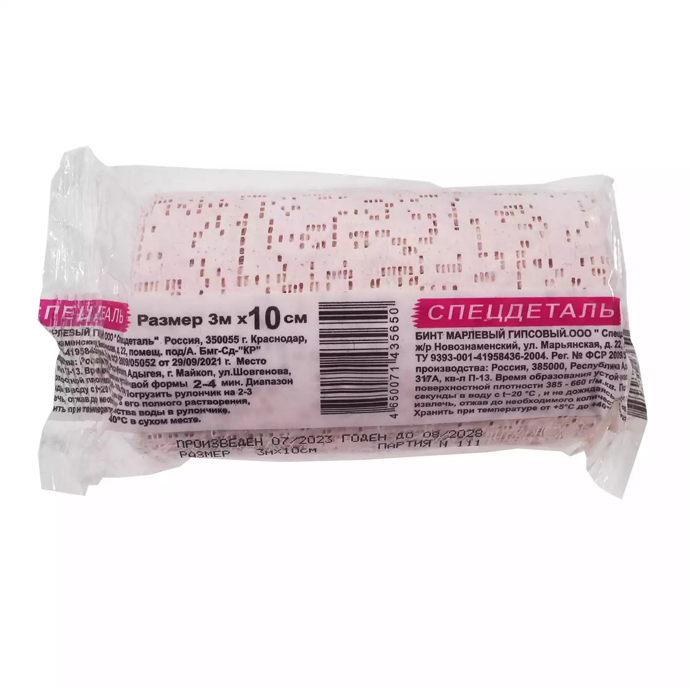 Бинт 3м*10см, гипсовый, время схватывания 2-4 минут, Спецдеталь (РОССИЯ)