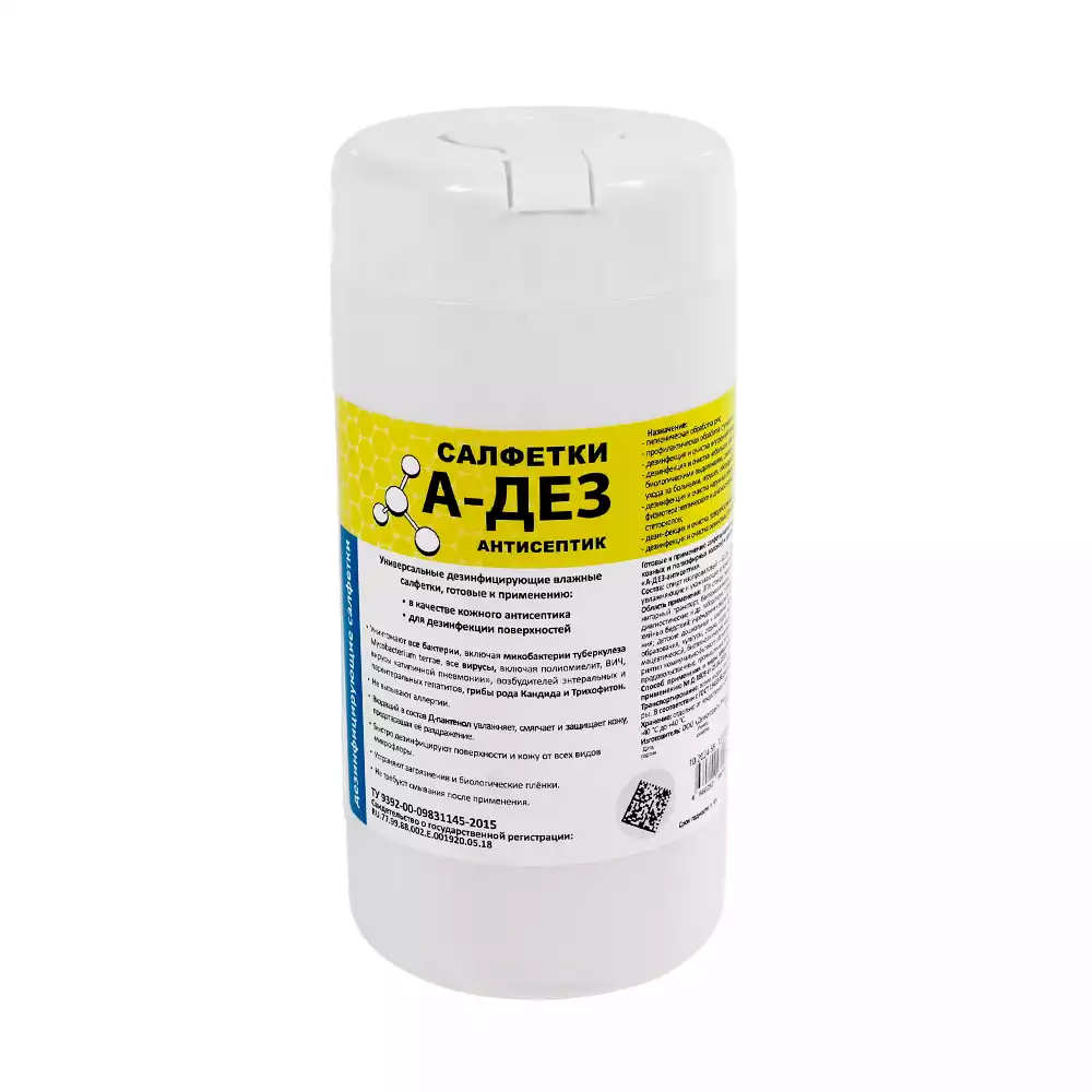 Салфетки "А-ДЕЗ-Антисептик", дезинфицирующие, размер 13,5*20см, в банке 60шт, готовые к применениюДезконтракт
