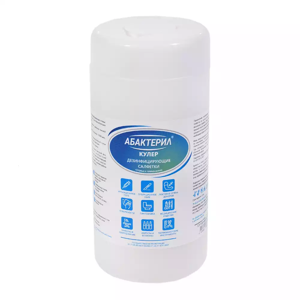 Салфетки "Абактерил - Кулер", дезинфицирующие, размер 12*18см, банка 60шт, готовые к применениюРудез (РОССИЯ)