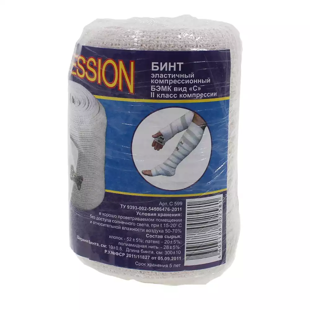 Бинт эластичный компрессионный БЭМК средней растяжимости "С", размер 2м*10см, Фарм ЛПП (РОССИЯ)