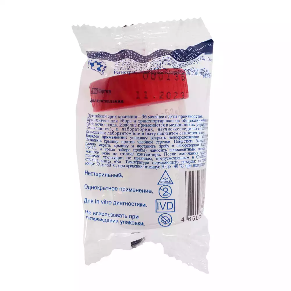 Контейнер 60мл, для взятия биоматериала, нестерильный, без лопаточки, инд.упаковкаРЗМИ (РОССИЯ)