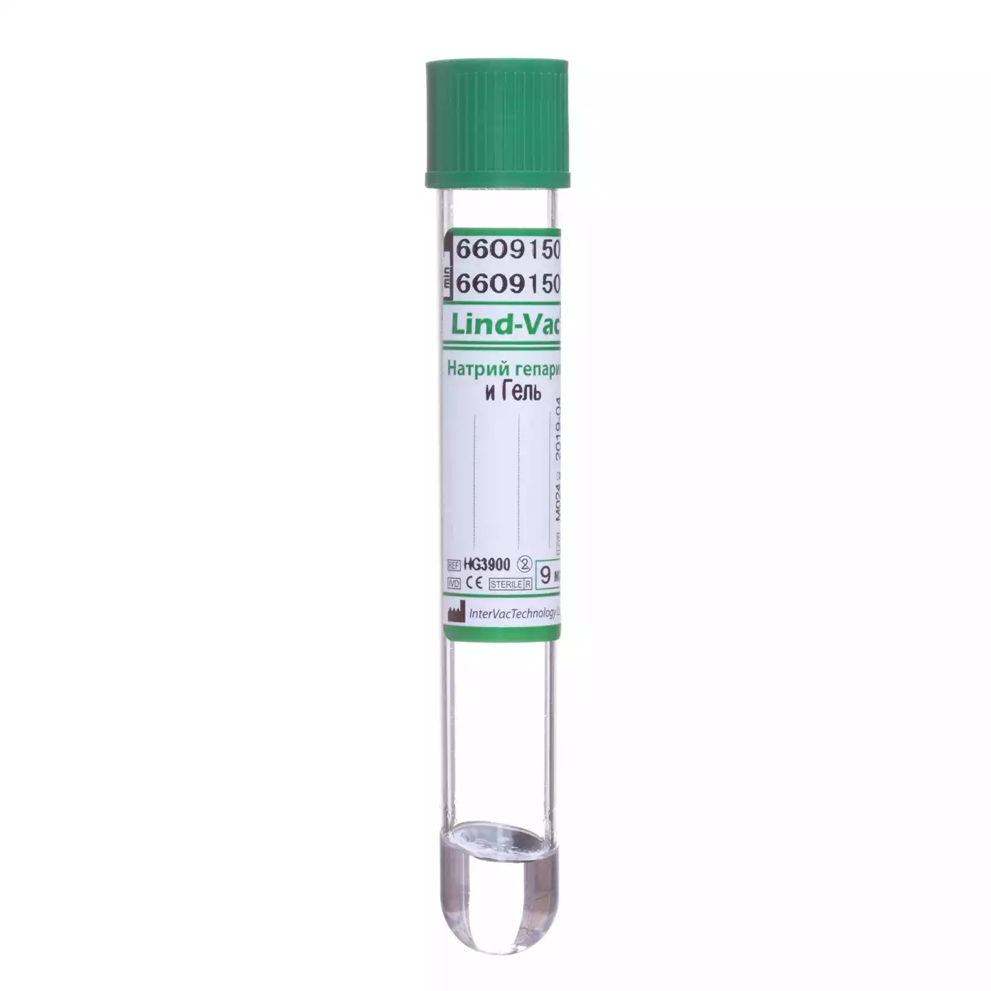 Пробирка вакуумная пластиковая Lind-Vac для взятия крови с натрий гепарином и разделительным гелем, объем 9 мл, размер 16*100 мм, цвет крышки зеленый, OÜ InterVacTechnology (ЭСТОНИЯ), 50 шт
