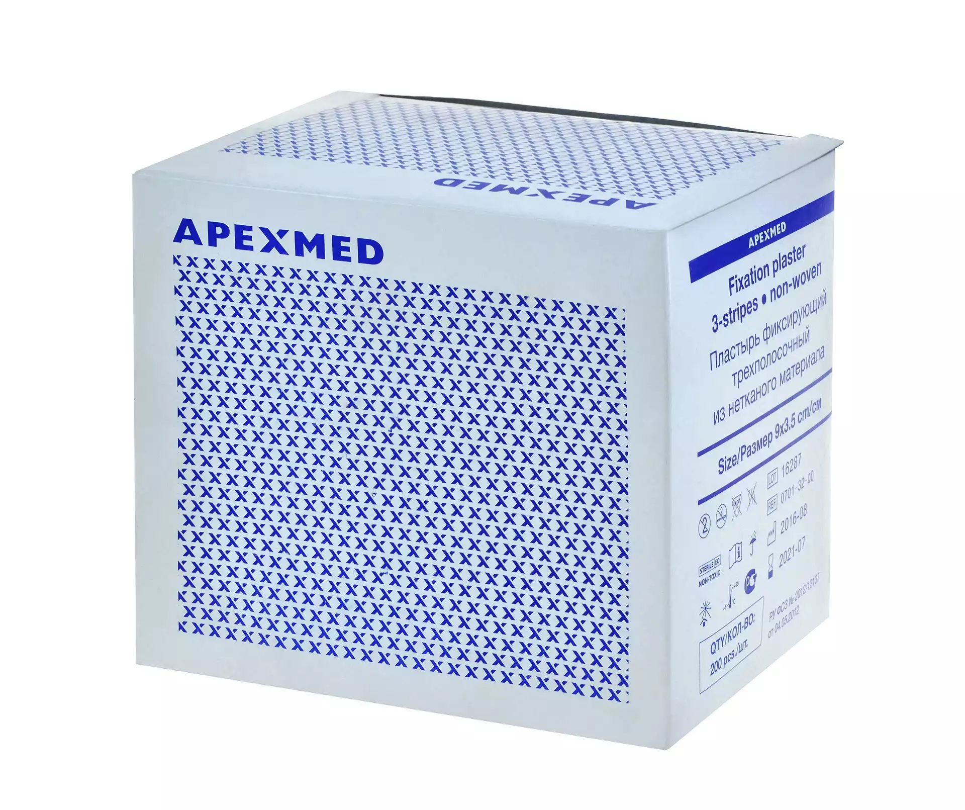Пластырь для игл, нетканный, размер 9см*3,5см, трехполосочный, упаковка 200шт, Apexmed International (НИДЕРЛАНДЫ)
