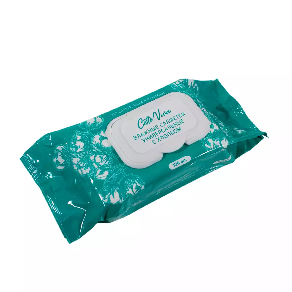 Салфетки влажные "Cotto Viva", гигиенические, универсальные, упаковка 120шт, крышка, РусВата (РОССИЯ)