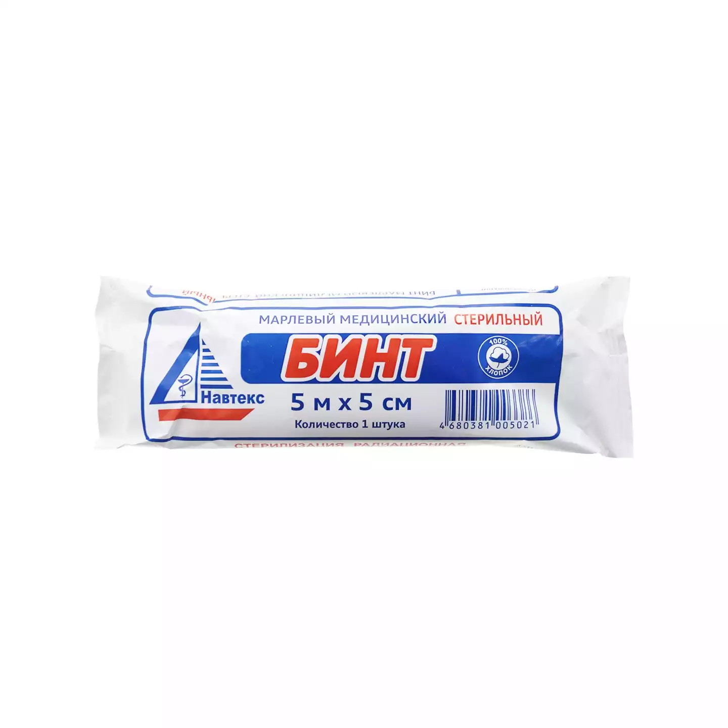 Бинт марлевый, размер 5м*5см, плотность 36г/м2, стерильный, Навтекс ХБК (РОССИЯ)