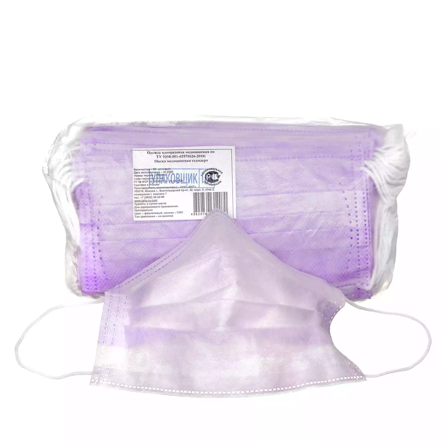 Маска Latio 3D M 3-х слойная, с носовым фиксатором 10см, на резинке, нестерильная, белая, коробка, КИТ (РОССИЯ)