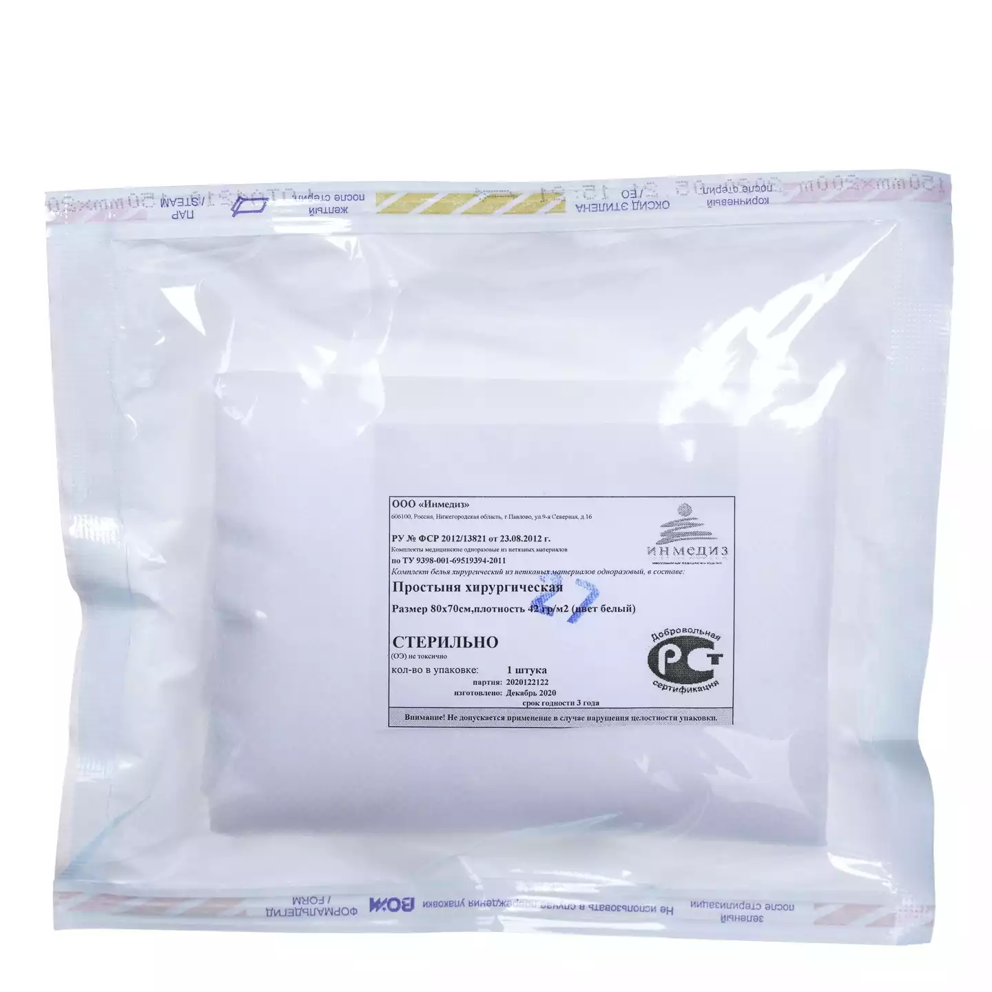 Простыня 70*80см, материал СМС 42м2, стерильная, белая, с РУИнмедиз (РОССИЯ)