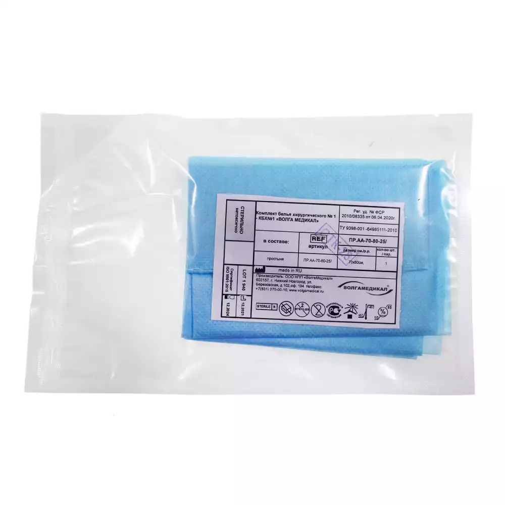 Простыня 70х80см, СМС 25г/м2, хирургическая, стерильная, голубаяВолга Медикал НПП (РОССИЯ)
