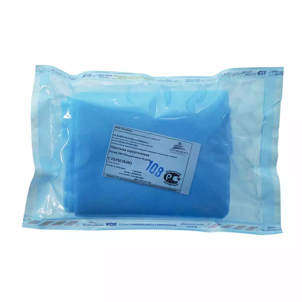 Простыня 70*200см, материал СМС 42/м2, стерильная, голубаяИнмедиз (РОССИЯ)