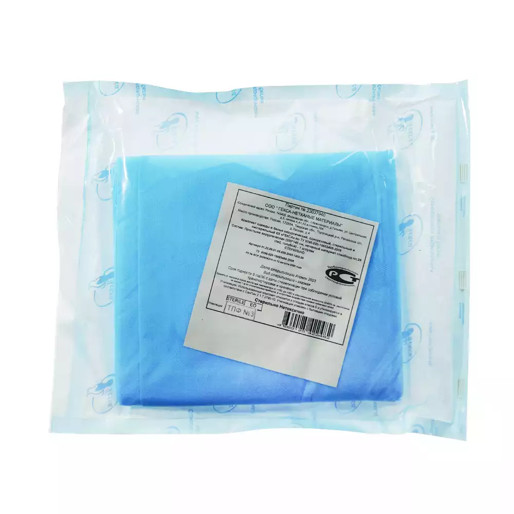 Простыня 140*200см, материал Спанбонд 25г/м2, стерильная, голубаяГекса-нетканые материалы (РОССИЯ)