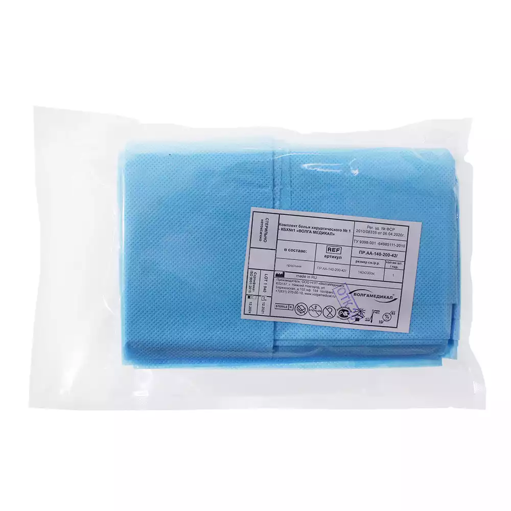 Простыня 140*200см, материал СМС 42г/м2, стерильная, голубаяВолга Медикал НПП (РОССИЯ)
