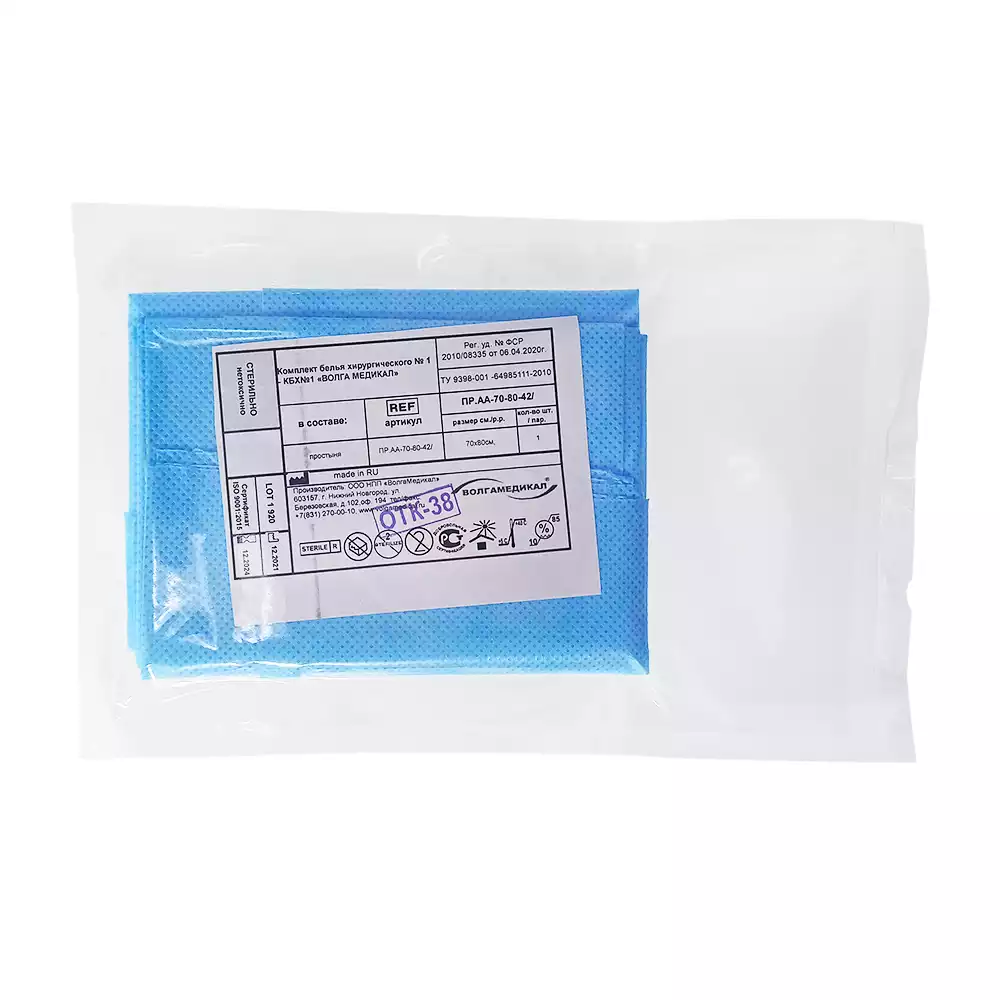 Простыня 70х80см, СМС 42г/м2, хирургическая, стерильная, голубаяВолга Медикал НПП (РОССИЯ)