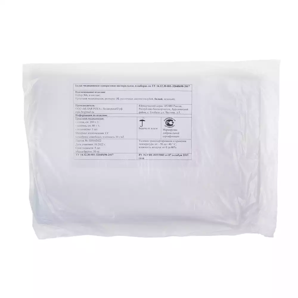 Простыня 80*200см, материал Спанбонд 30г/м2, нестерильная, белая, индивидуальное сложениеБелая река (РОССИЯ)