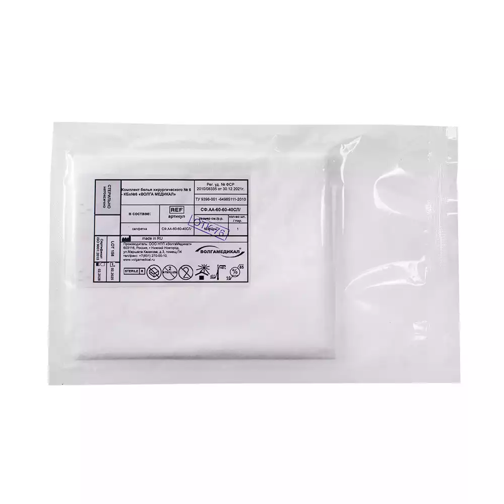 Салфетка 60*60см, материал спанлейс 40г/м2, стерильная, белаяВолга Медикал НПП (РОССИЯ)