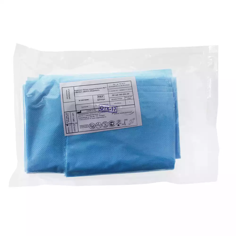 Простыня 140*200см, материал СМС 25г/м2, стерильная, голубаяВолга Медикал НПП (РОССИЯ)