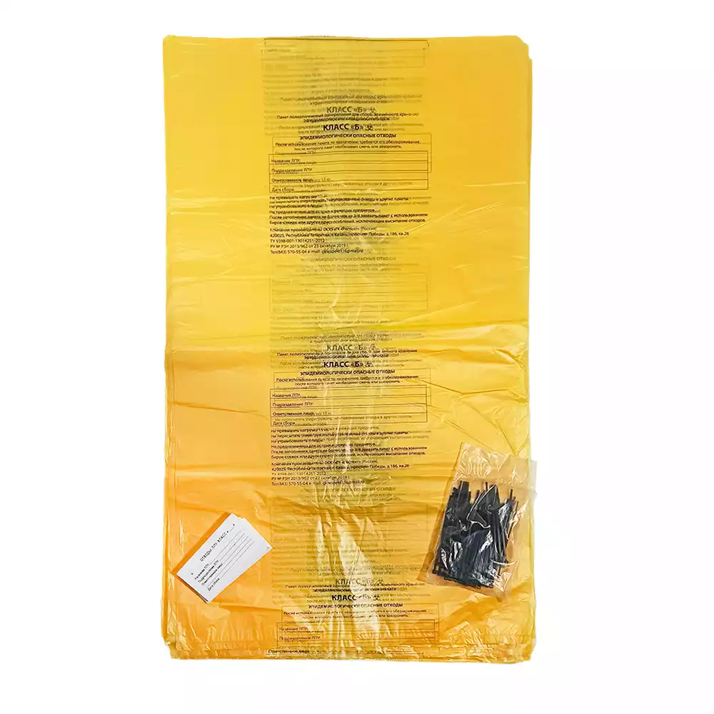 Для безопасного обращения с этим типом отходов и применяются специализированные мешки желтого цвета с соответствующей маркировкой. Эти пакеты изготавливаются из прочного полиэтилена, устойчивого к проколам и разрывам, что исключает контакт персонала с опасным содержимым.