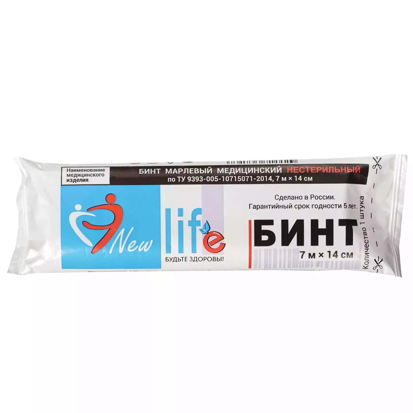 Бинт марлевый, размер 7м*14см, плотность 30г/м2, нестерильный, инд. упаковка, Навтекс ХБК (РОССИЯ)