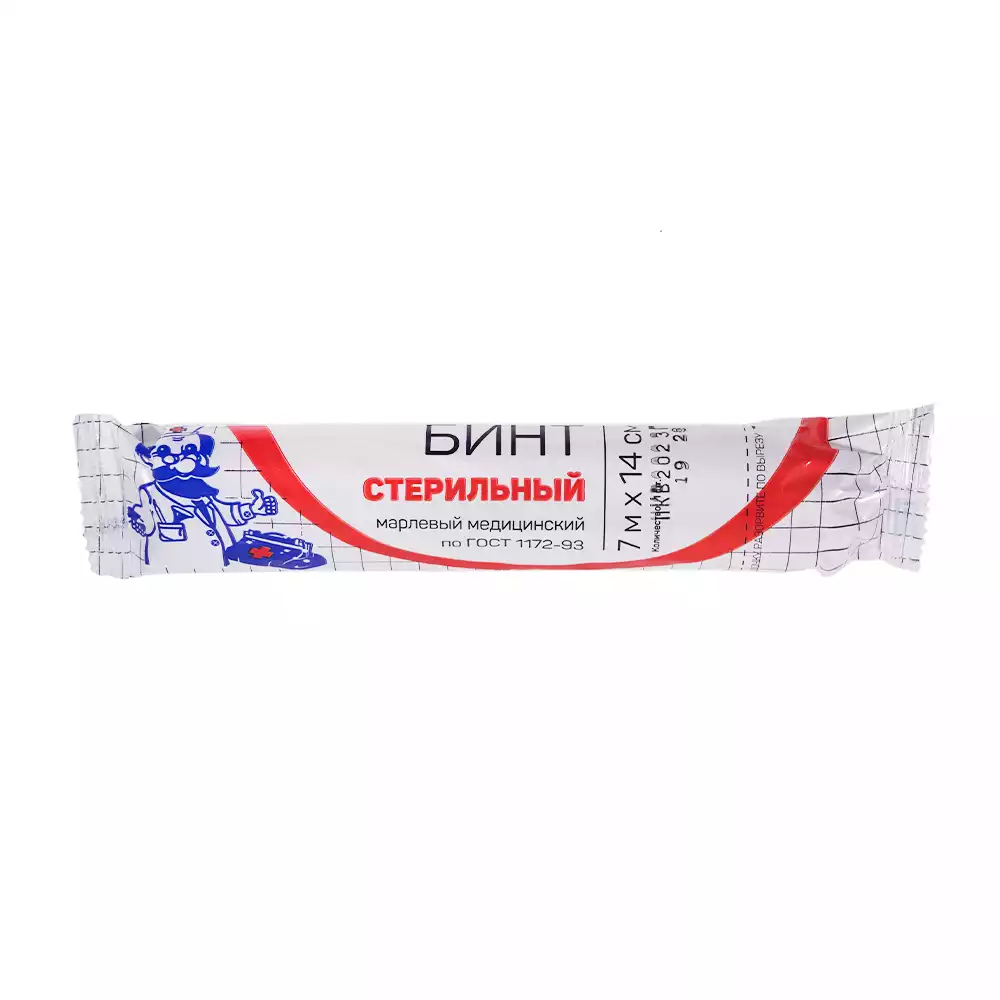 Бинт марлевый, размер 7м*14см, плотность 28г/м2, стерильный, Лейко (РОССИЯ)