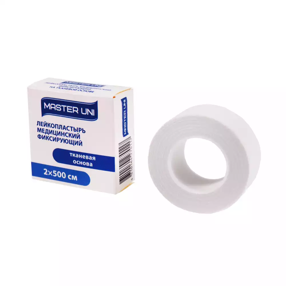 Лейкопластырь Master Uni на тканевой основе (хлопок), фиксирующий, размер 2см*500см, катушка в картонной коробке, ООО "ХЕЛСЛАБ" (РОССИЯ)