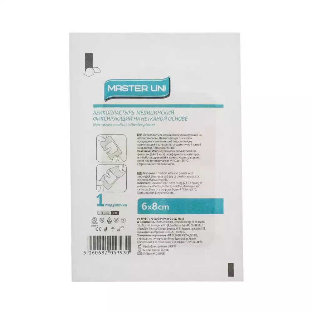 Пластырь Master Uni нетканный, для фиксации внутривенных катетеров, размер 6*8см, в виде штанишек, с подушечкойPharmline s.r.o. (ЧЕХИЯ), 50 шт