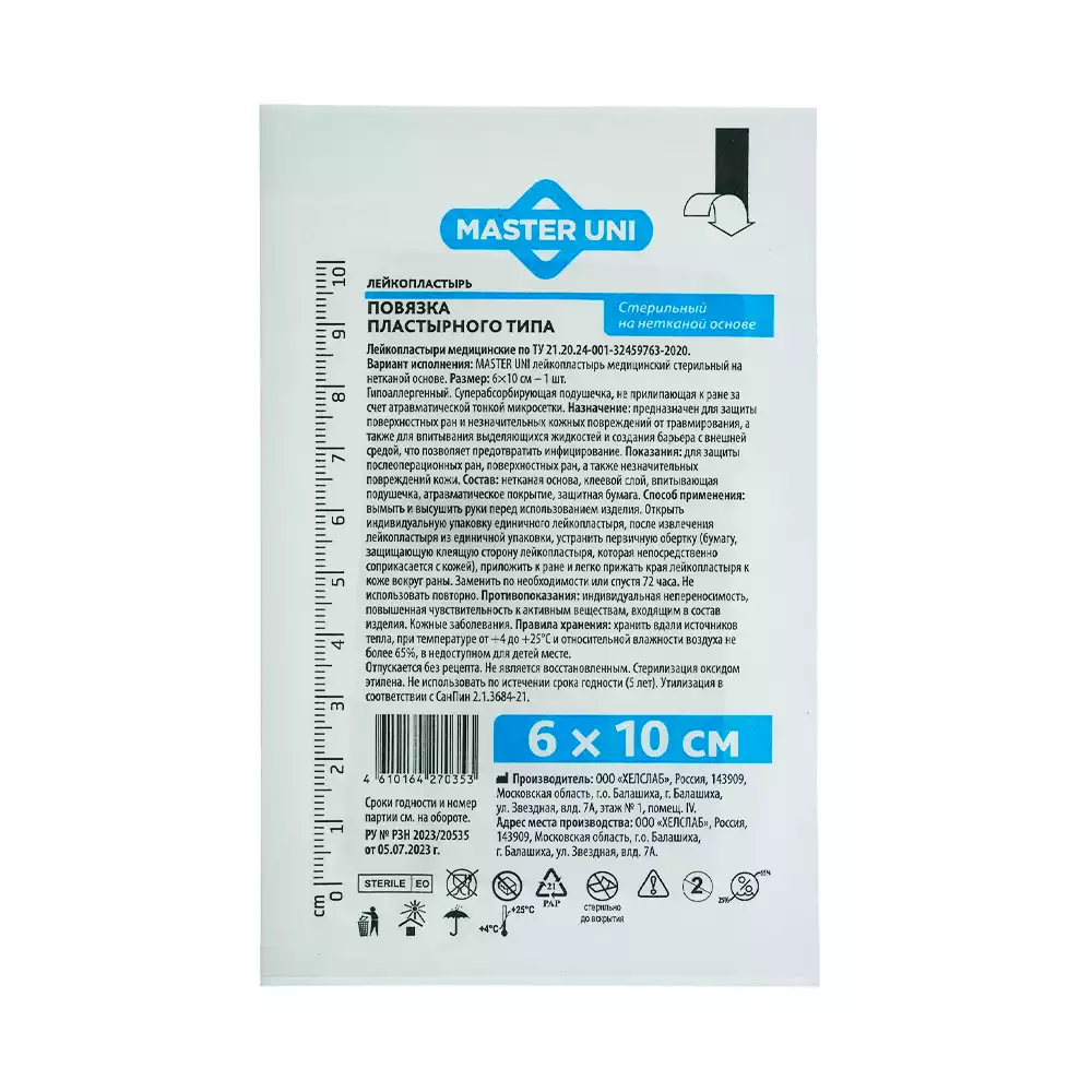 Повязка Master Uni нетканная, размер 6,0*10,0см, стерильнаяООО "ХЕЛСЛАБ" (РОССИЯ)