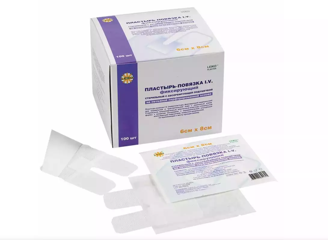 Пластырь для фиксации катетеров LEIKO 6×8 см, на нетканой основе с u-образным вырезом и впитывающей прокладкойJiangsu Nanfang Medical Co Ltd (КИТАЙ), 100 шт