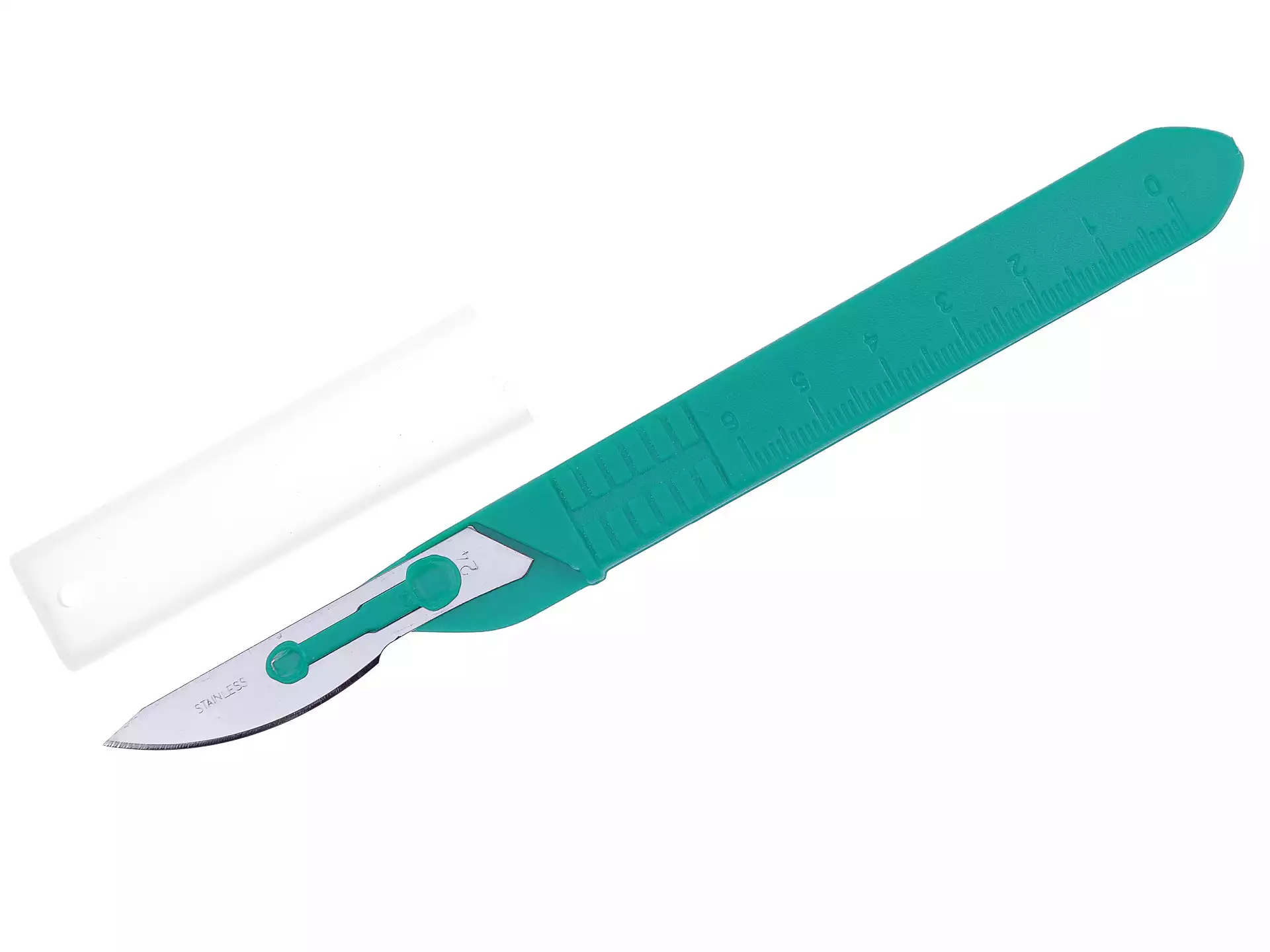Скальпель с пластмассовой ручкой №24, нержавеющая сталь, одноразовый стерильный, Ribbel International Ltd. (ИНДИЯ)