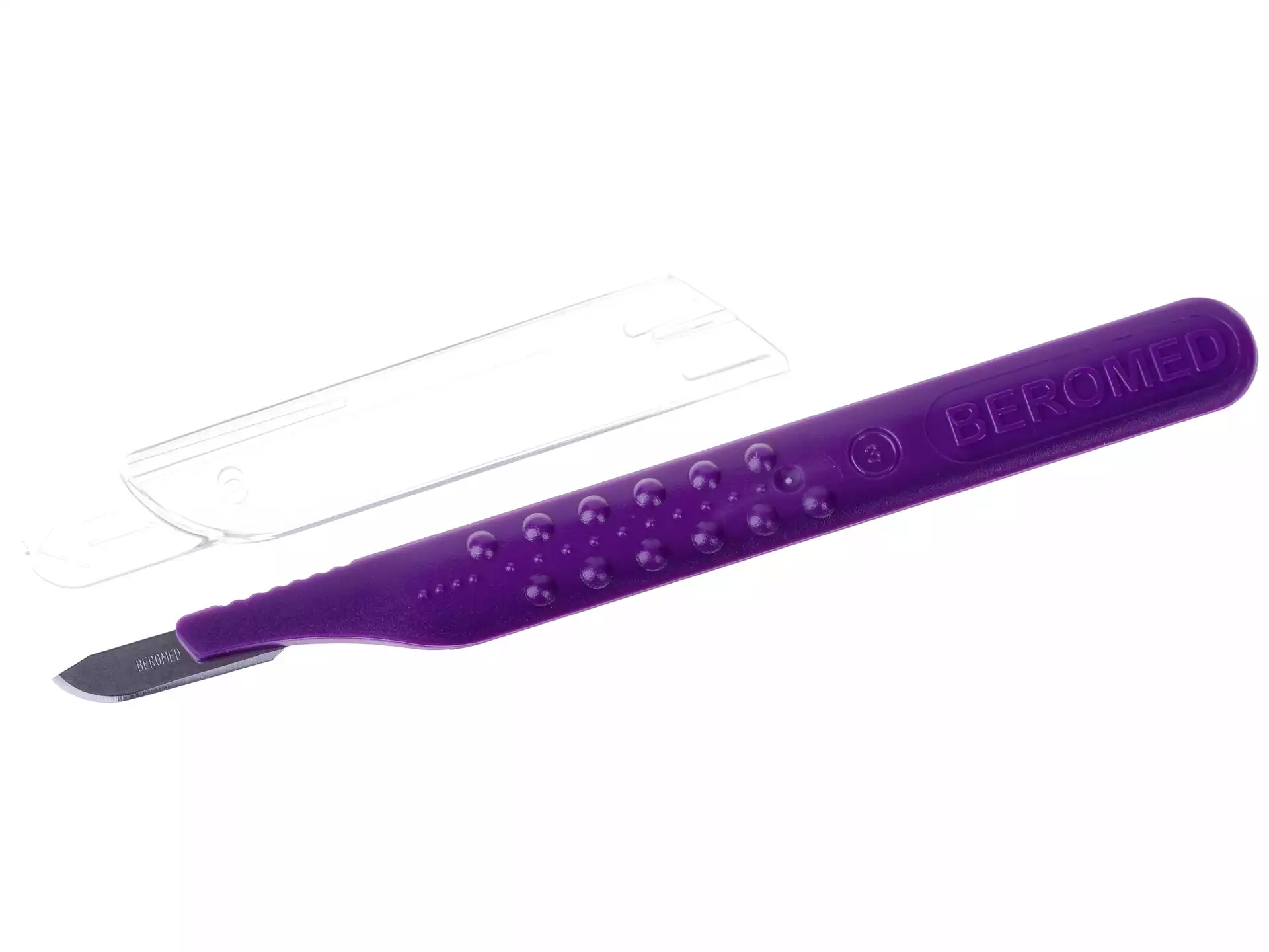 Скальпель с пластмассовой ручкой №10, высококачественная хирургическая (углеродистая) сталь, одноразовый, стерильный, Beromed GmbH Hospital Products
