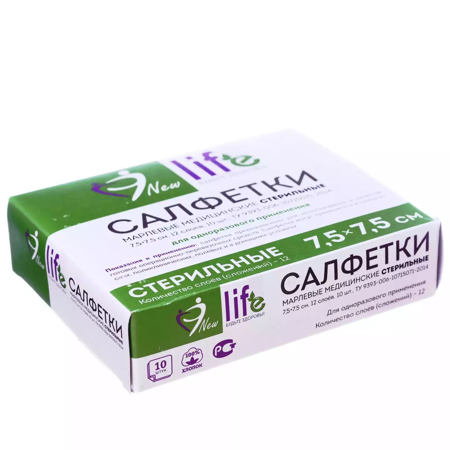 Салфетка марлевая №10, 12-ти слойная размер 7,5*7,5см, плотность 36, стерильная, инд.упаковка каждой салфетки, Навтекс ХБК (РОССИЯ)