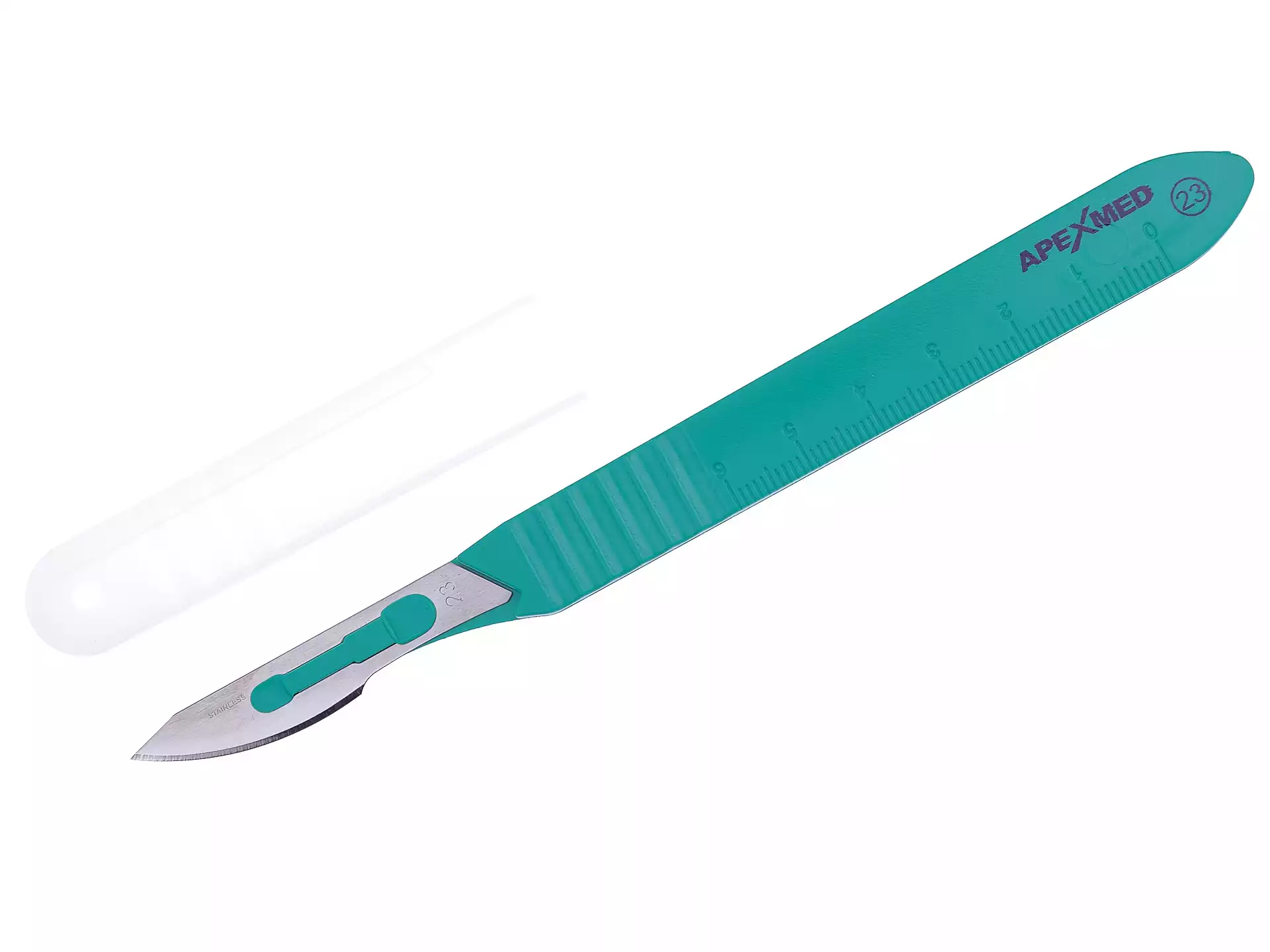 Скальпель с пластмассовой ручкой №23, STEELUXE, нержавеющая сталь, одноразовый, стерильный, Apexmed International (КИТАЙ)