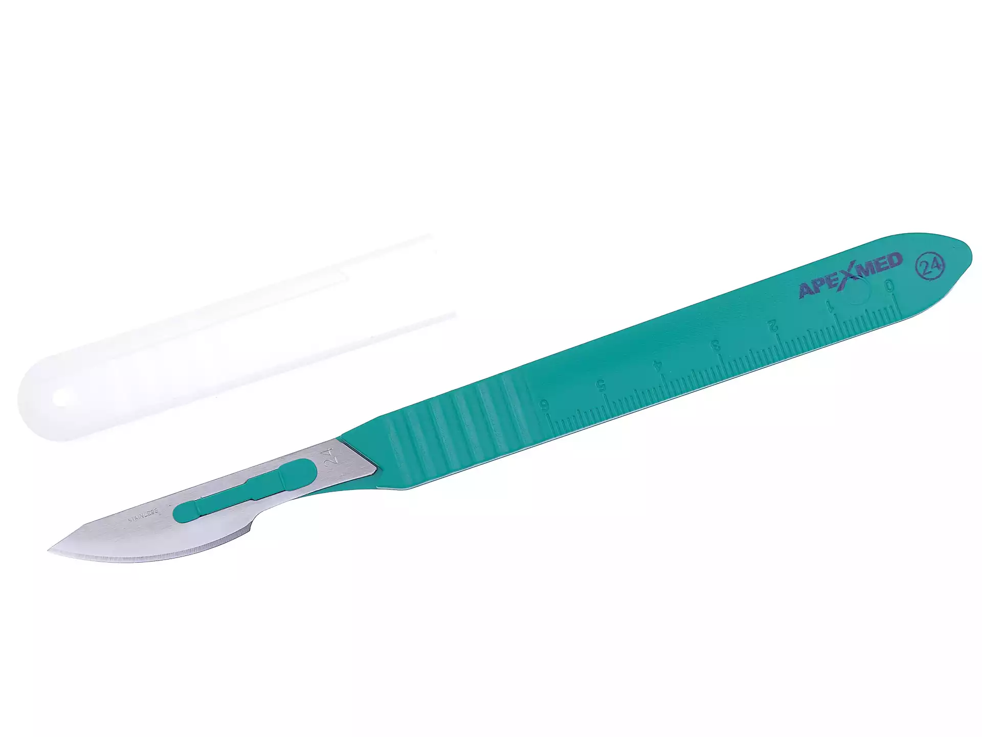 Скальпель с пластмассовой ручкой №24, STEELUXE, нержавеющая сталь, одноразовый, стерильный, Apexmed International (КИТАЙ)