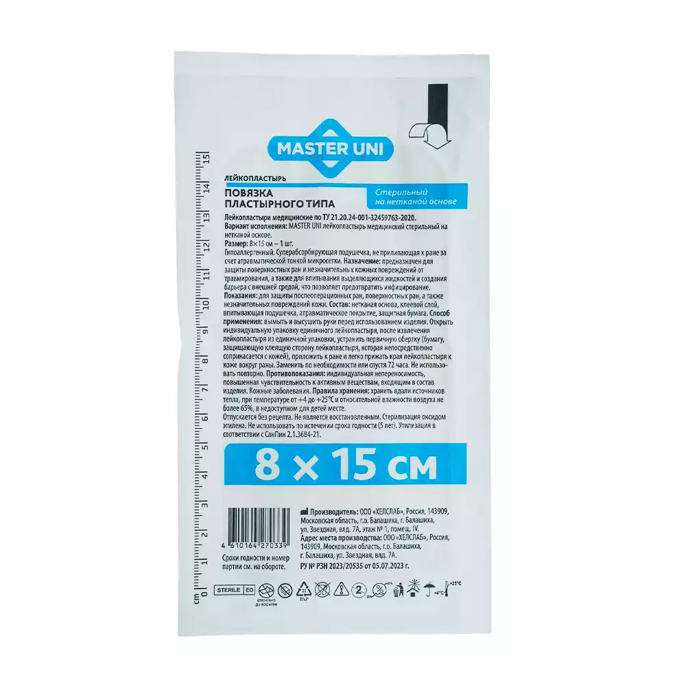 Повязка Master Uni нетканная, размер 8,0*15,0см, стерильная, ООО "ХЕЛСЛАБ" (РОССИЯ)