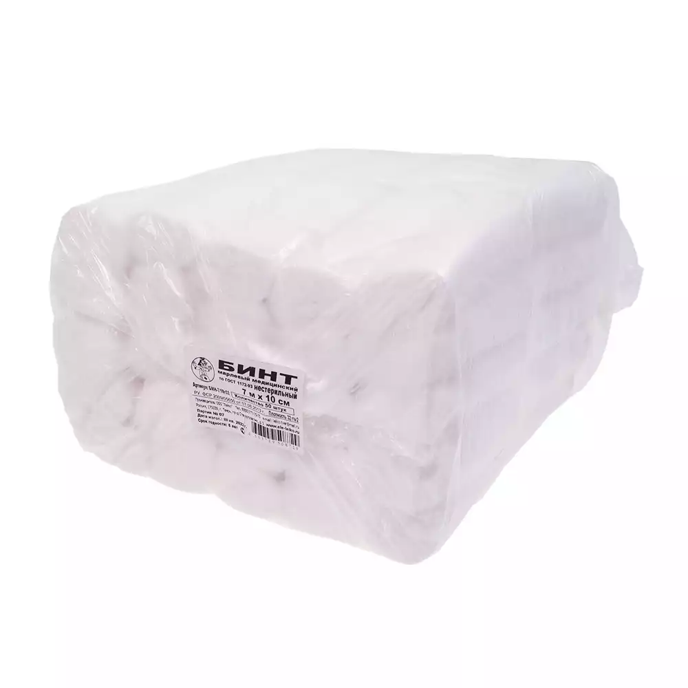 Бинт марлевый, размер 7м*10см, марлевый, плотность 32г/м2, нестерильный, Лейко (РОССИЯ), 50 шт