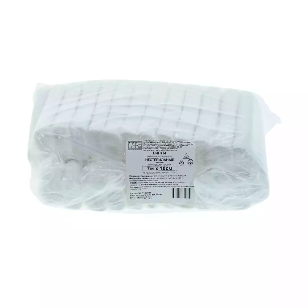 Бинт NF марлевый, размер 7м*10см, плотность 32г/м2, нестерильный, Ньюфарм , 25 шт