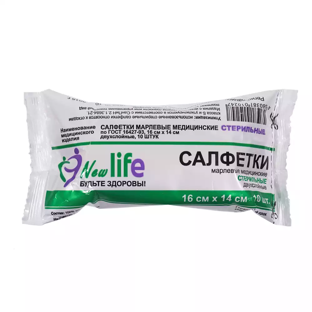 Салфетка марлевая №10, 2-х слойная, размер 16*14см Лайф, плотность 36г/м2, стерильная, Навтекс ХБК (РОССИЯ)