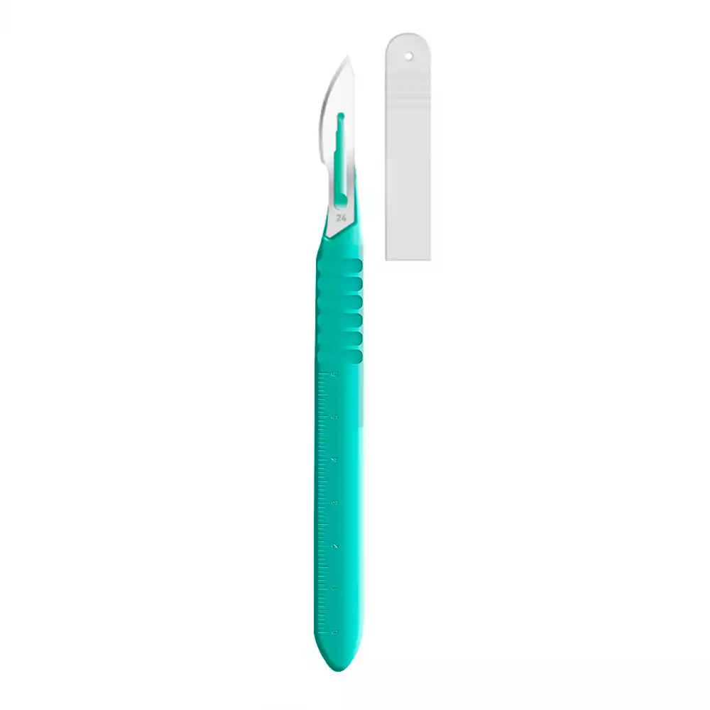 Скальпель VOLKMANN №24 с пластмассовой ручкой, полостной, остроконечный, нержавеющая сталь, одноразовый, стерильный, Volkmann Medizintechnik GMBH. Germany (ИНДИЯ)