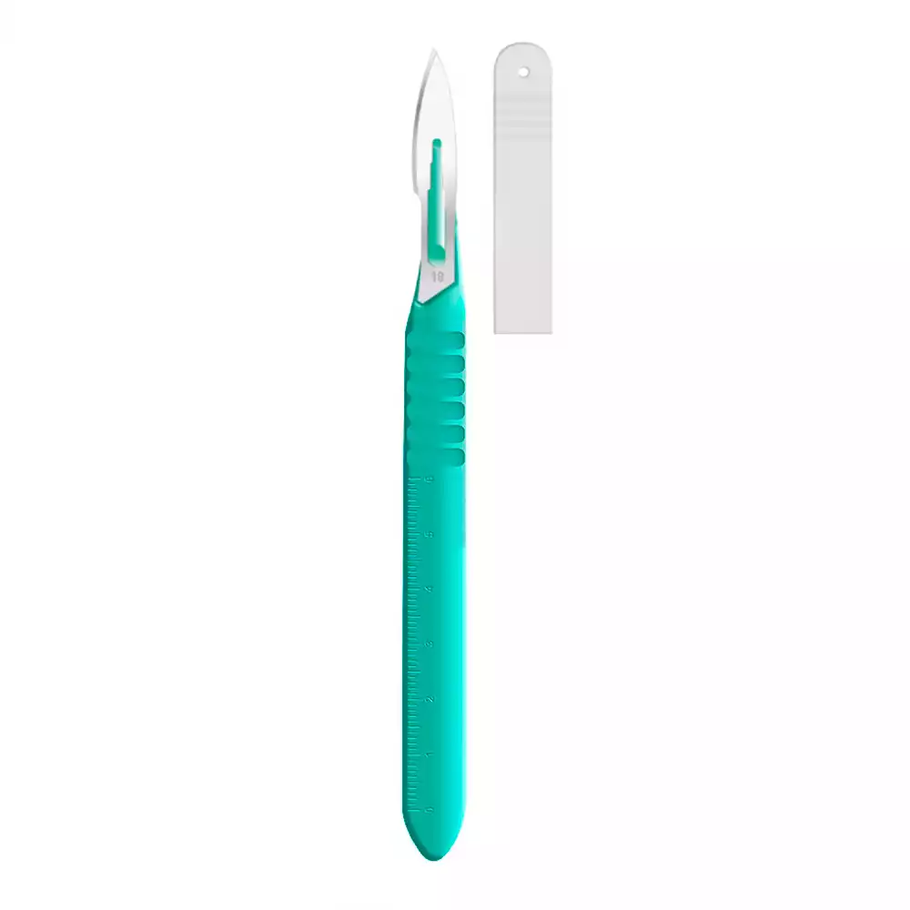Скальпель VOLKMANN №18 с пластмассовой ручкой, остроконечный ,брюшистый нержавеющая сталь, одноразовый, стерильный, Volkmann Medizintechnik GMBH. Germany (ИНДИЯ)