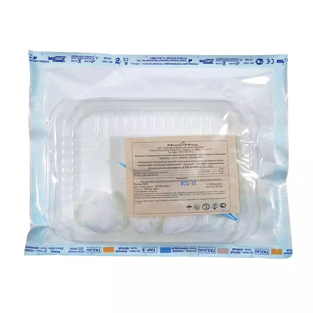 Комплект "ДиалМед" для перевязок (салфетка 5*5см, пинцет, тампон) , одноразовый стерильный, ДиалМед МК (РОССИЯ)