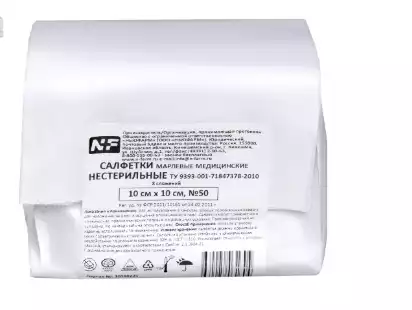 Салфетки марлевые нестерильные 10см*10см №50, 8 сложений 32г, NF, Ньюфарм