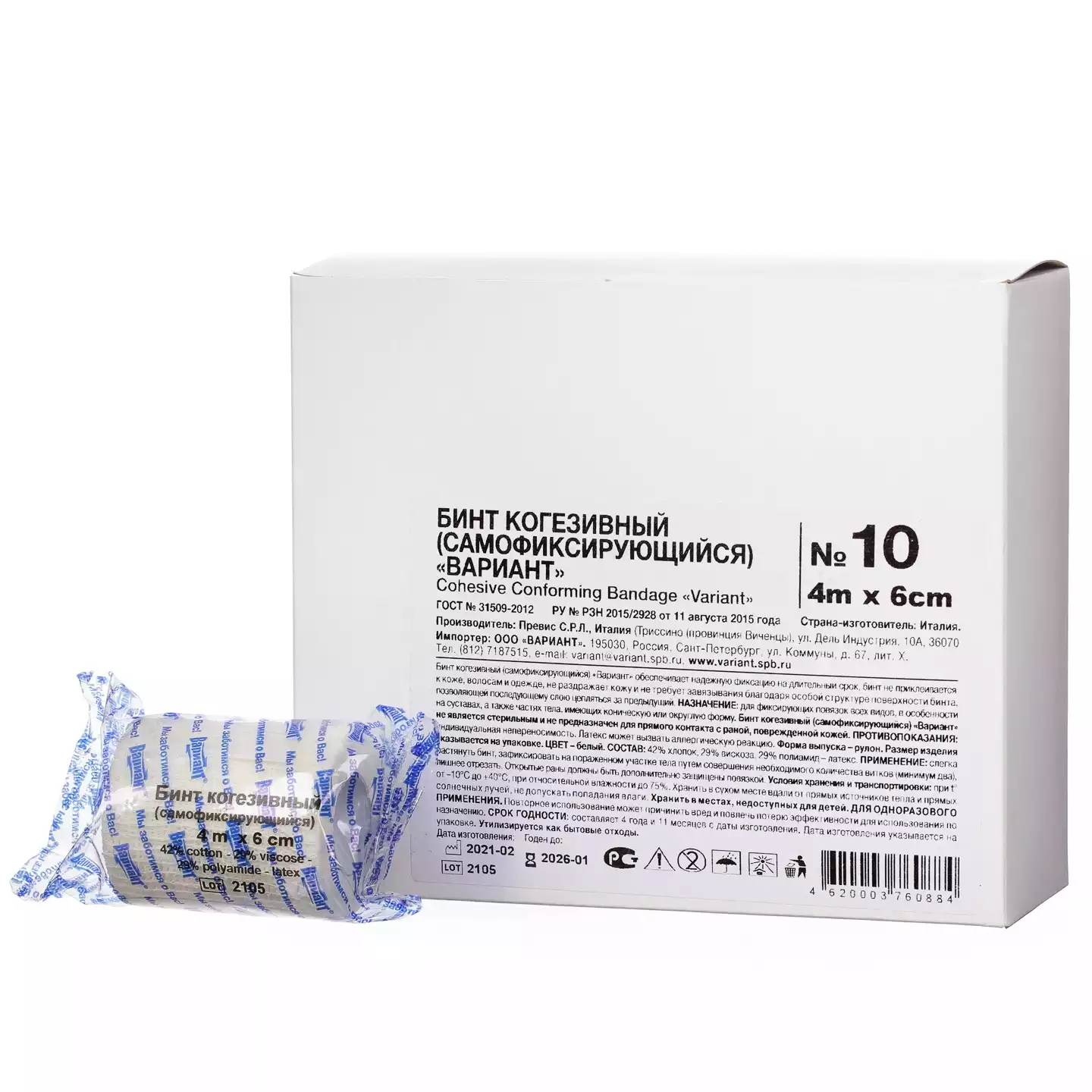 Бинт эластичный "Вариант" cамофиксирующийся когезивный, размер 4м*6см, цвет белый, упаковка 10шт, Превис С.Р.Л. (Италия) (ИТАЛИЯ)