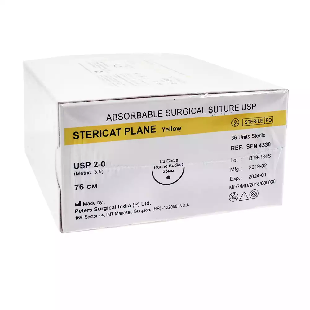Стерикат 2/0 (3,5), длина нити 76см, игла 1/2 круглая колющая 25мм, упаковка 36шт, SFN4338, Peters Surgical (ИНДИЯ)