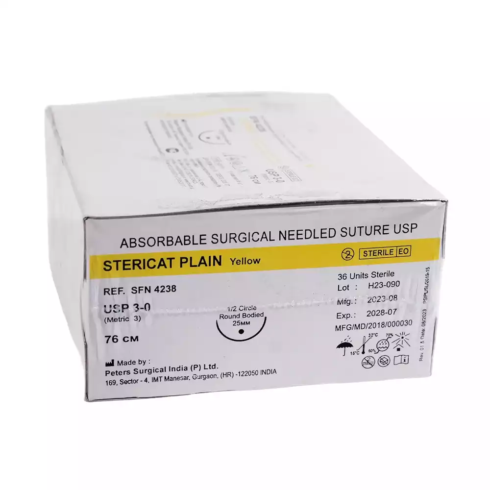Стерикат 3/0 (3), длина нити 76см, игла 1/2 круглая колющая 25мм, упаковка 36шт, SFN4238, Peters Surgical (ИНДИЯ)
