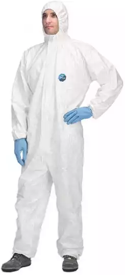 Комбинезон защитный одноразовый обычно изготовлен из прочных, но дышащих материалов, что обеспечивает комфорт при носке. Он легко одевается и снимается, что делает его удобным в использовании.