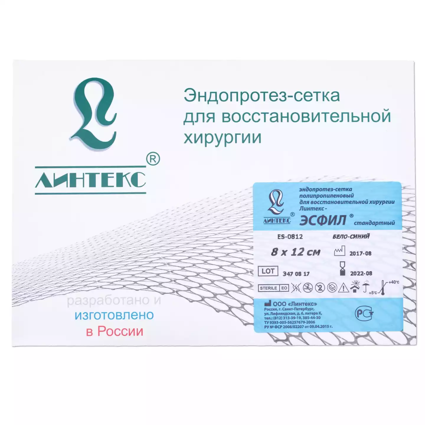 Эндопротез-сетка ЭСФИЛ стандартный, полипропилен, размер 8*12см, для восстановительной хирургии стерильная, Линтекс (РОССИЯ)